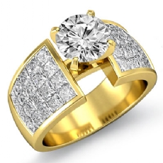 Invisible Setting Shank Round diamond engagement Ring in 18k Gold Yellow