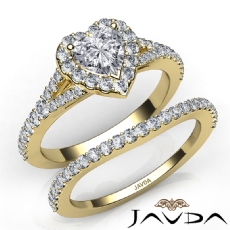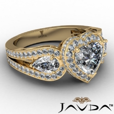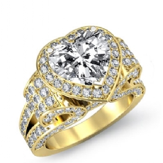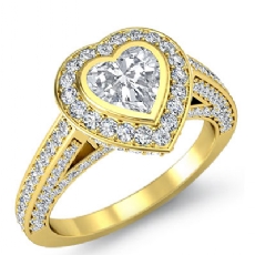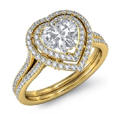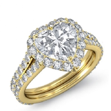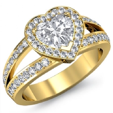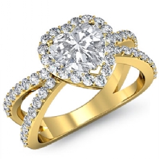 Split Shank Halo Pave Set Heart diamond engagement Ring in 18k Gold Yellow