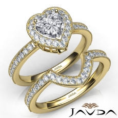 Diamond Accent Halo Pave Heart diamond engagement Ring in 18k Gold Yellow