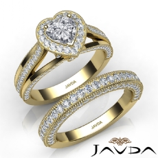Vintage Filigree Halo Pave Heart diamond engagement Ring in 18k Gold Yellow