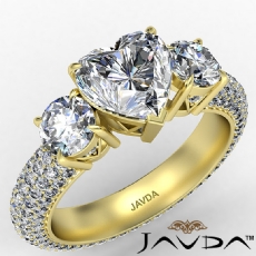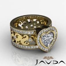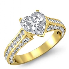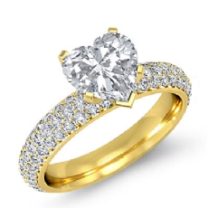 3 Row Micro Pave Set Shank Heart diamond Ring in 18k Gold Yellow