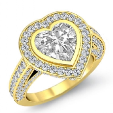 Bezel Set Halo 3 Row Shank Heart diamond engagement Ring in 18k Gold Yellow