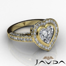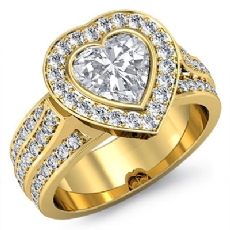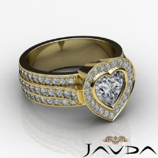 3 Row Shank Bezel Halo Heart diamond engagement Ring in 18k Gold Yellow