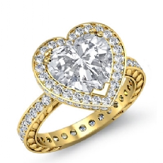 Eternity Filigree Halo Heart diamond engagement Ring in 18k Gold Yellow