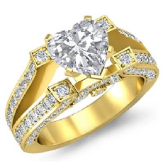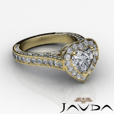 4 Row Shank Halo Pave Heart diamond engagement Ring in 18k Gold Yellow