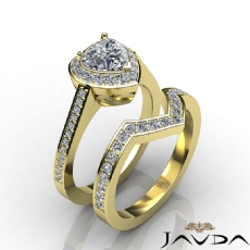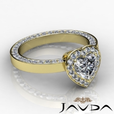 Halo Micro Pave Bridge Accent Heart diamond engagement Ring in 18k Gold Yellow