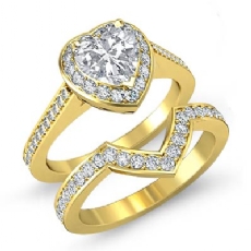 Pave Circa Halo Sidestone Heart diamond engagement Ring in 18k Gold Yellow