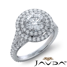 French V Cut Pave Set Halo Round diamond Ring in 14k Gold White