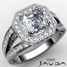 Split Shank Halo Sidestone Asscher diamond engagement Ring in 14k Gold White