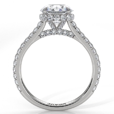 Halo Micro Pave Bridge Accent Round diamond engagement Ring in 14k Gold White