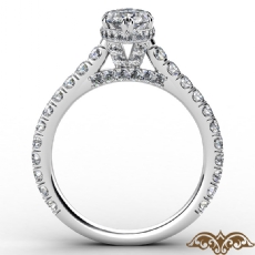 Halo Micro Pave Bridge Accent Cushion diamond engagement Ring in 14k Gold White