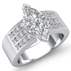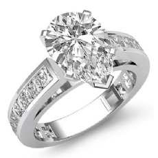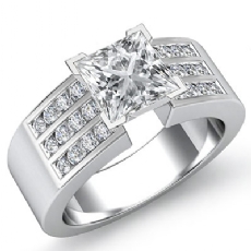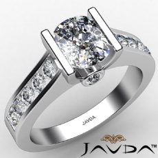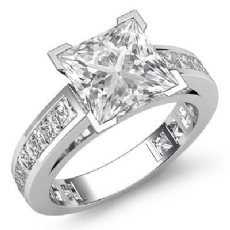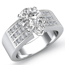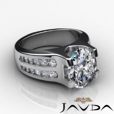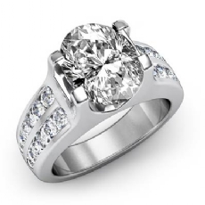 3 Stone Channel Sidestone Oval diamond engagement Ring in 14k Gold White