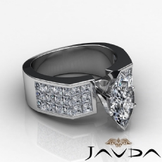 Classic Side-Stone Invisible Marquise diamond engagement Ring in 14k Gold White