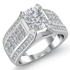 Classic Side-Stone Invisible Cushion diamond engagement Ring in 14k Gold White