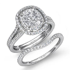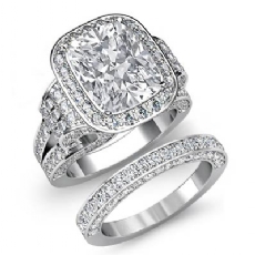 Halo Pave Wedding Set Cushion diamond engagement Ring in 14k Gold White