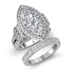 Split Shank Halo Bridal Sets Marquise diamond engagement Ring in 14k Gold White