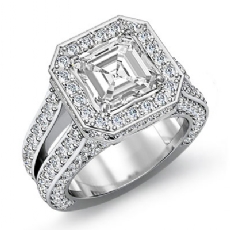 Split Shank Halo Pave Set Round diamond engagement Ring in 14k Gold White