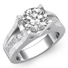 3 Row Channel Set Shank Round diamond engagement Ring in 14k Gold White