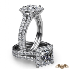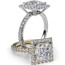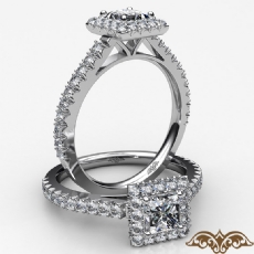 Designer Shank Halo Pave Princess diamond engagement Ring in 14k Gold White