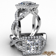 Twisted Shank Halo Micro Pave Princess diamond engagement Ring in 14k Gold White