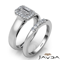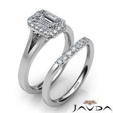 $ 1,916.00Halo Three Stone Split Shank Emerald diamond Ring in 14k Gold White