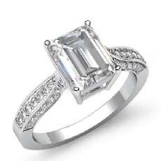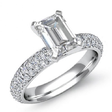 French U Cut Pave Crown halo Emerald diamond Ring in 14k Gold White