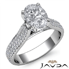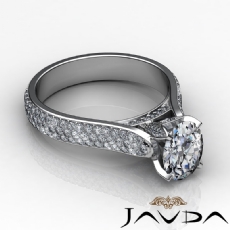 Three Stone Pave Bridge Accent Oval diamond engagement Ring in 14k Gold White
