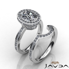 Circa Style Halo Bridal Set Oval diamond engagement Ring in 14k Gold White
