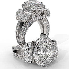 Vintage Split Shank Pave Oval diamond engagement Ring in 14k Gold White