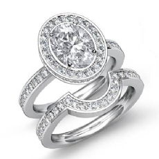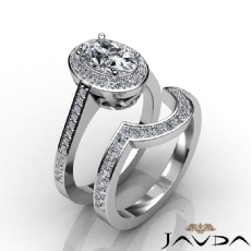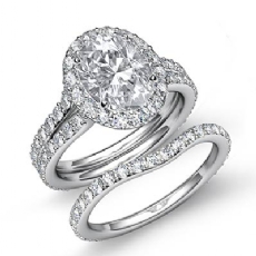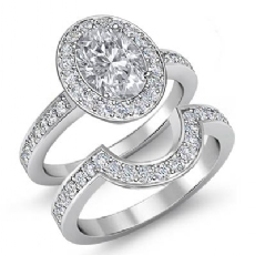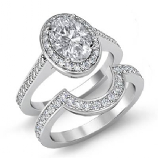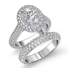 Halo Pave Wedding Bridal Set Oval diamond engagement Ring in 14k Gold White
