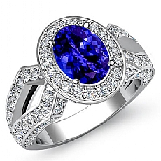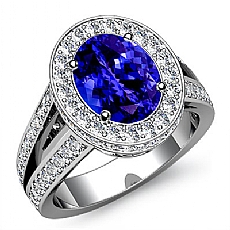Popular Split Shank Halo Oval diamond engagement Ring in 14k Gold White