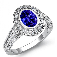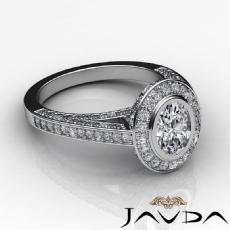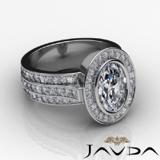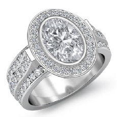 Halo Pave Bezel Set Oval diamond engagement Ring in 14k Gold White