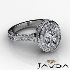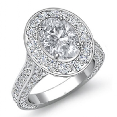 Halo Bezel Pave Set Shank Oval diamond engagement Ring in 14k Gold White