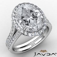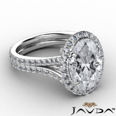 Split Shank Halo Pave Set Oval diamond engagement Ring in 14k Gold White