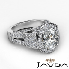 Triple Shank Halo Micro Pave Oval diamond Ring in 14k Gold White