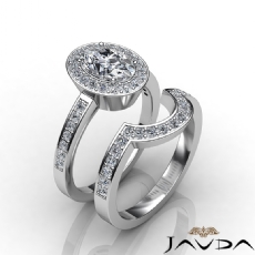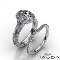 Halo Bypass Style Bridal Set Oval diamond engagement Ring in 14k Gold White