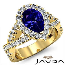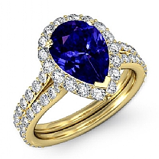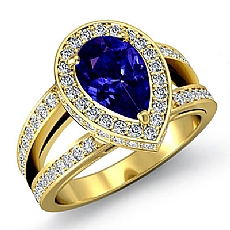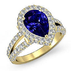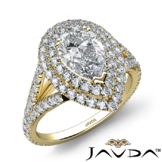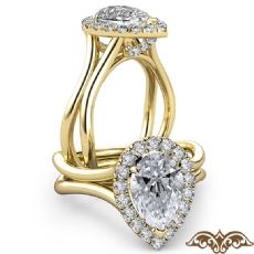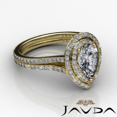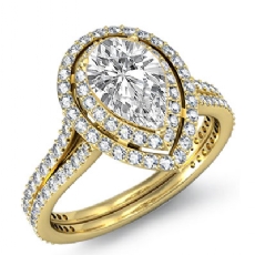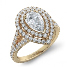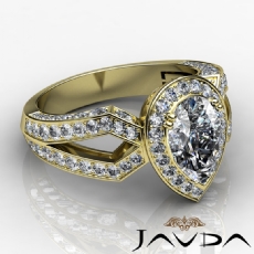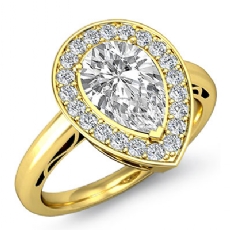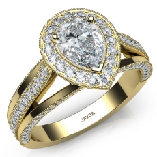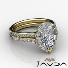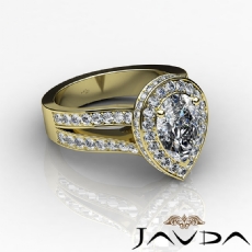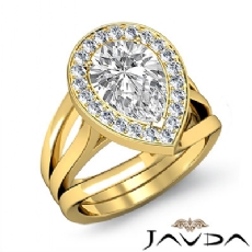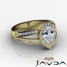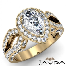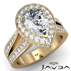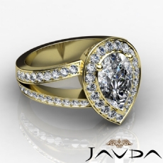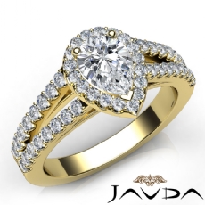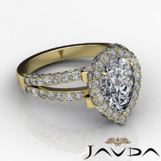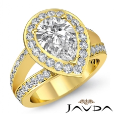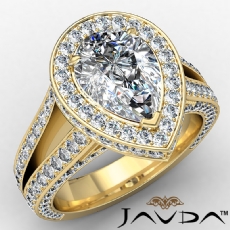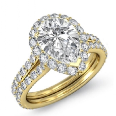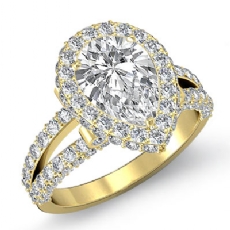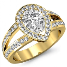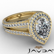 Halo Pave Set Split Shank Pear diamond engagement Ring in 14k Gold Yellow
