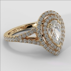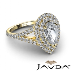 V Shaped Shank Double Halo Pear diamond engagement Ring in 14k Gold Yellow