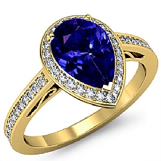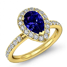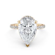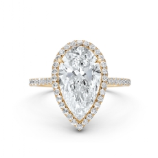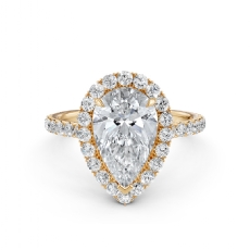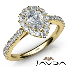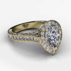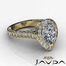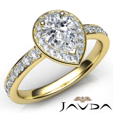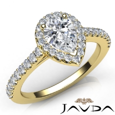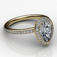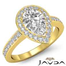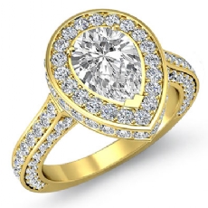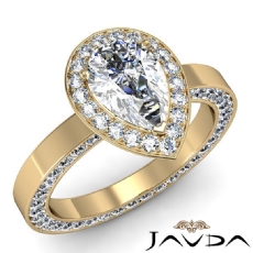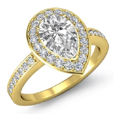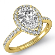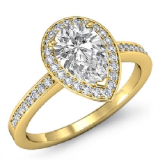 Halo Sidestone Pave Set Pear diamond engagement Ring in 14k Gold Yellow