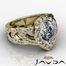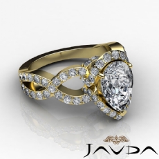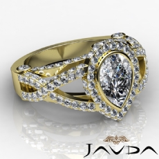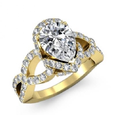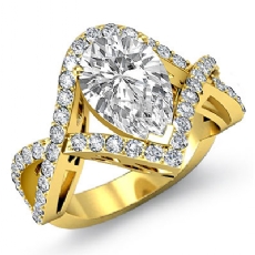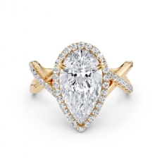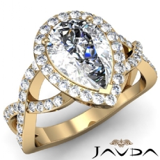 Criss Cross Shank Halo Pave Pear diamond Ring in 14k Gold Yellow