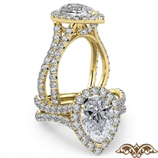Split Shank Halo Pave Setting Pear diamond engagement Ring in 14k Gold Yellow