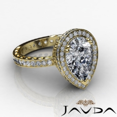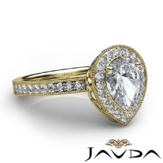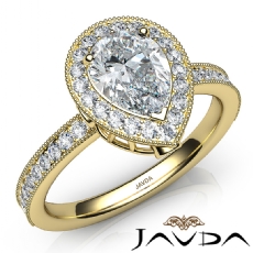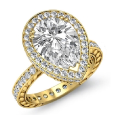 Halo Pave Filigree Sidestone Pear diamond engagement Ring in 14k Gold Yellow