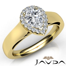 Crown Halo Petite Pave Set Pear diamond Ring in 14k Gold Yellow