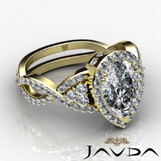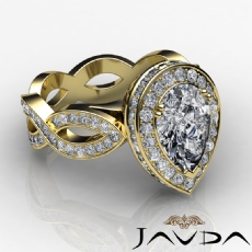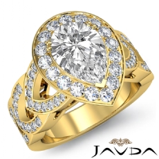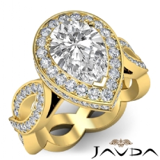 Designer Shank Halo Pave Pear diamond engagement Ring in 14k Gold Yellow