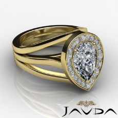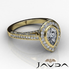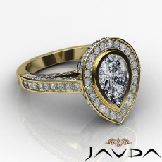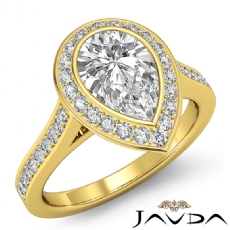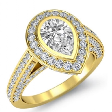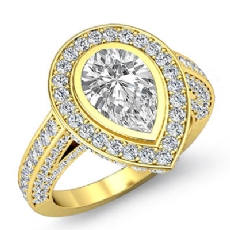 Halo Bezel Setting Sidestone Pear diamond engagement Ring in 14k Gold Yellow