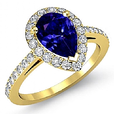 4 Prong Halo With Sidestone Pear diamond engagement Ring in 14k Gold Yellow