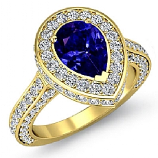 Pave Set Halo Sidestone Pear diamond engagement Ring in 14k Gold Yellow
