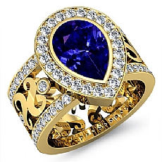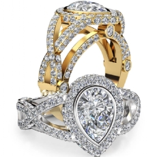 Halo Pave Bezel Set Cathedral Pear diamond Ring in 14k Gold Yellow