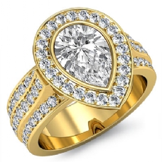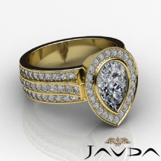 3 Row Shank Bezel Halo Pear diamond engagement Ring in 14k Gold Yellow