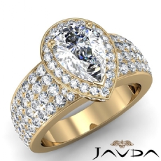 Petite Pave Halo 4 Row Shank Pear diamond Ring in 14k Gold Yellow